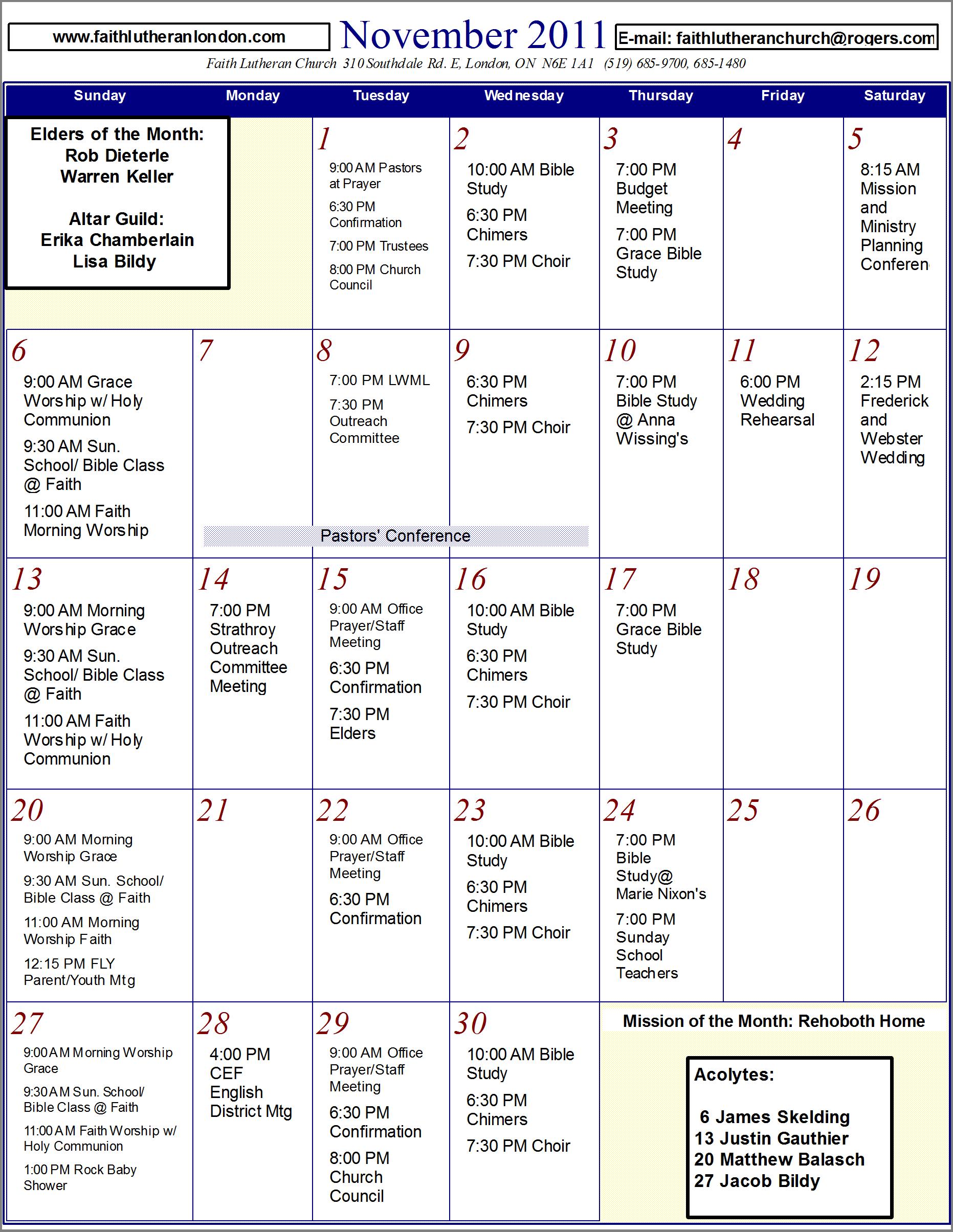 , Grace - Nov. Calendar